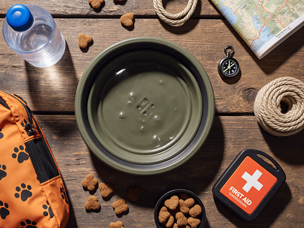 Water is equally critical. Bring a collapsible bowl and check in frequently, especially on hot days. If your dog seems sluggish, is panting heavily, or slowing down, find a shaded spot, offer water, and rest until they recover.[2] Dehydration in a large dog can escalate quickly.